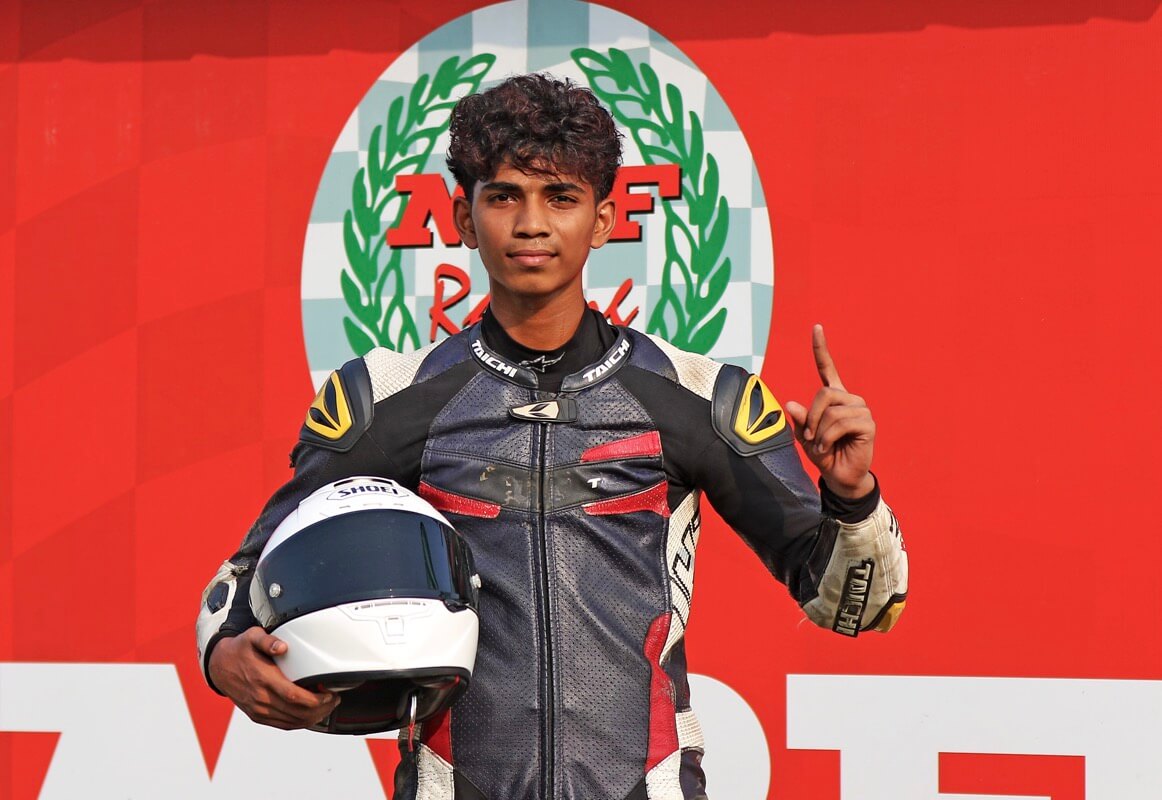 Chennai, October 20: Two teenagers, Sarthak Chavan from Pune and Chennai collegian Abdul Basim put in sizzling laps to qualify for pole position in their respective categories as the fifth and final round of the MRF MMSC fmsci Indian National Motorcycle Racing Championship 2023 got underway at the Madras International Circuit, here on Friday.